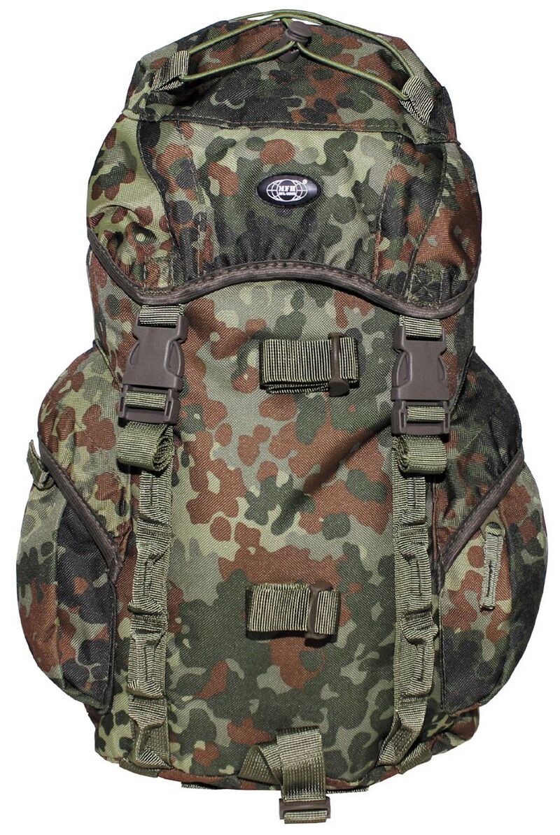 verstellbare, gepolsterte Tragegurte mit Plastik D-Ringen verstellbarer Brust- und Hüftgurt stabiler, gepolsterter Rückenbereich Polsterungen aus atmungsaktivem Mesh-Material 1 Tragegriff oben Deckel mit Klickverschluss, elastischem Kordelzug mit Stopper sowie hinten 1 Deckeltasche mit RV und abnehmbarer Rucksackhülle Hauptfach mit doppeltem Kordelzug 2 aufgesetzte Seitentaschen mit Patte und 2-Wege Reissverschluss Front mit 3 Verzurrriemen diverse Schlaufen vorne und unten Fassungsvermögen: ca. 15 l Masse: ca. 27 x 46 x 14 cm (B x H x T) Gewicht: ca. 1,2 kg Material: 100 % Polyester