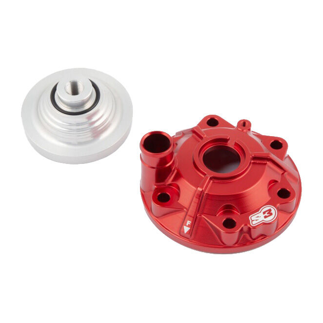 S3 ZYLINDERKOPF EXTREME, NIEDRIGE KOMPRESSION, ROT Der S3 Zylinderkopfkit ist hergestellt aus hochwertigstem Aluminium, um eine hohe Qualität und eine lange Haltbarkeit zu erzielen. Durch das zweiteilige Design werden Lufteinschlüsse, die beim Giessen von Standard Zylinderköpfen entstehen können, eliminiert. Die stärkeren Wände des Brennraumes helfen die Wärme besser zu absorbieren um diese effizienter von der Kühlflüssigkeit abzutransportiert. Die geschmiedete Zylinderkopfabdeckung hat ein grösseres Wasservolumen und ist dünner als das originale Teil, wodurch der gesamte Zylinderkopf leichter wird. Alle diese Eigenschaften wirken sich auf die Kühlleistung aus, was den Motor vor Überhitzung schützt und so die Langlebigkeit der Komponenten erhöht. Eloxiert und laserbeschriftet für 100% Factory Look. _EXTREME_ Ausführung: Niedrige Kompression (LOW COMP gold Brennraum), reduzierte Motorkompression führt zu einer sehr feinen Gasannahme, ideal für rutschige Bedingungen. Leichtere Kontrolle über das Motorrad und grössere Service Intervalle. Ideal für Enduro, TOP-Piloten verwenden S3 Zylinderköpfe. Lieferumfang: * 1x geschmiedete Zylinderkopf Abdeckung * 1x Brennraum LOW COMP (gold) * O-Ringe für Zylinderkopf und Brennraum S3-XTR-3361-250-R,S3 Zylinderkopf Extreme, Niedrige Kompression, rot,Extreme Enduro,XTR-3361-250-R,cylinder head,culasse,culasse dome demontable,zylinderkopfabdeckung,zylinderabdeckung,racing zylinderkopf Passend auf: GAS GAS EC 250 HUSQVARNA TE 250i KTM 250 EXC TPI