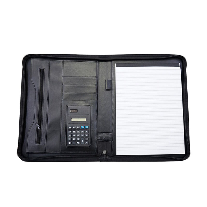 - Multifunktionale Schreibmappe aus schwarzem Kunstleder