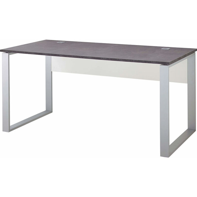 Schreibtisch – Schreibtisch Holt – Holzwerkstoff – B 160 T 80 H 75 cm – Metallkufen und 1 vordere Blende in Weiss.