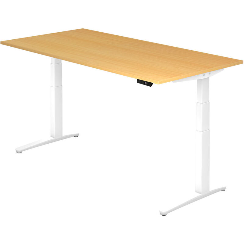 Schreibtisch – Schreibtisch Office – Holzwerkstoff – B 200 T 100 H 130 cm – Arbeitshöhe 65–130 cm; Höhenjustierung ± 5 mm; Plattendicke 2,5 cm; Reckteckrohr 10,7 x 6,7 cm, 2-stufig; Kabel 3 m lang – 2 Motoren in den Säulen integriert; abklappbarer Kabelwanne enthalten; Auffahrschutz; 4 Speicherplätze