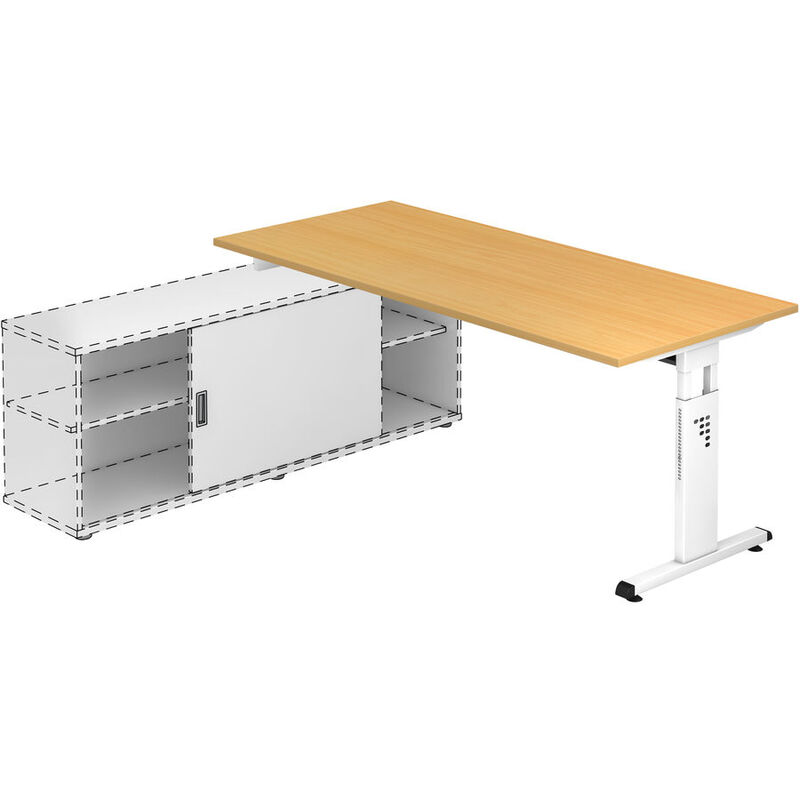 Aufsatz-Schreibtisch – Schreibtisch Office – Holzwerkstoff – B 180 T 80 H 78 cm – Arbeitshöhe einstellbar auf 72cm, 75cm oder 78cm – horizontale Kabelwanne; vertikale Kabelführung im Fuss