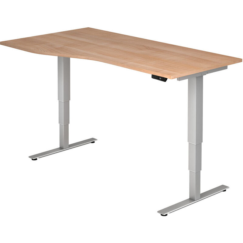 Schreibtisch – Schreibtisch Office – Holzwerkstoff – B 180 T 100 H 128.5 cm – Arbeitshöhe 63,5–128,5 cm; Höhenjustierung ± 5 mm; Plattendicke 2,5 cm; Quadratrohr 7 cm; Kabel 3 m lang – 2 Motoren in den Säulen integriert; Horizontale Kabelwanne enthalten; Standby 0,3 Watt