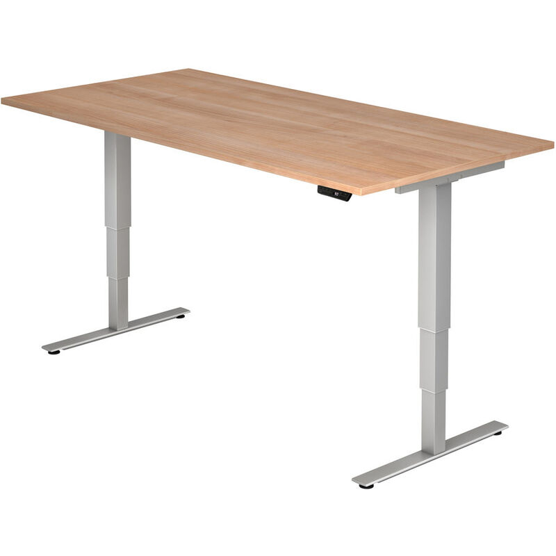 Schreibtisch – Schreibtisch Office – Holzwerkstoff – B 200 T 100 H 128.5 cm – Arbeitshöhe 63,5–128,5 cm; Höhenjustierung ± 5 mm; Plattendicke 2,5 cm; Quadratrohr 7 cm; Kabel 3 m lang – 2 Motoren in den Säulen integriert; Horizontale Kabelwanne enthalten; Standby 0,3 Watt
