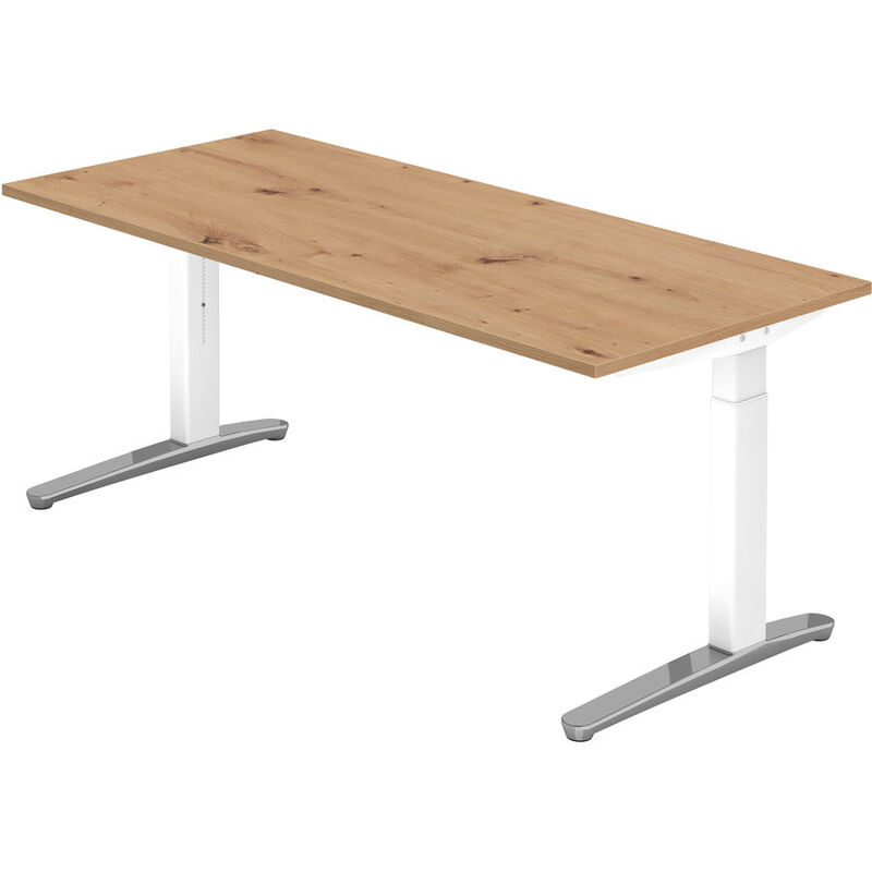 Schreibtisch – Schreibtisch Office – Holzwerkstoff – B 180 T 80 H 85 cm – Arbeitshöhe 65–85 cm; Höhenjustierung ± 5 mm; Plattendicke 2,5 cm; Reckteckrohr 10.7 x 6.7 cm – mit abklappbarer Kabelwanne