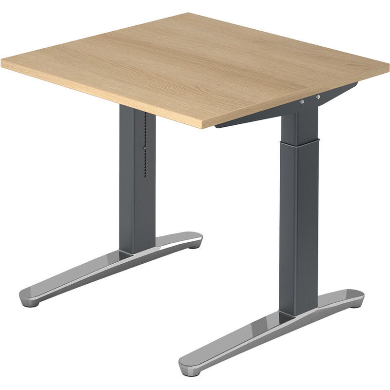 Schreibtisch – Schreibtisch Office – Holzwerkstoff – B 80 T 80 H 85 cm – Arbeitshöhe 65–85 cm; Höhenjustierung ± 5 mm; Plattendicke 2,5 cm; Reckteckrohr 10.7 x 6.7 cm – mit abklappbarer Kabelwanne