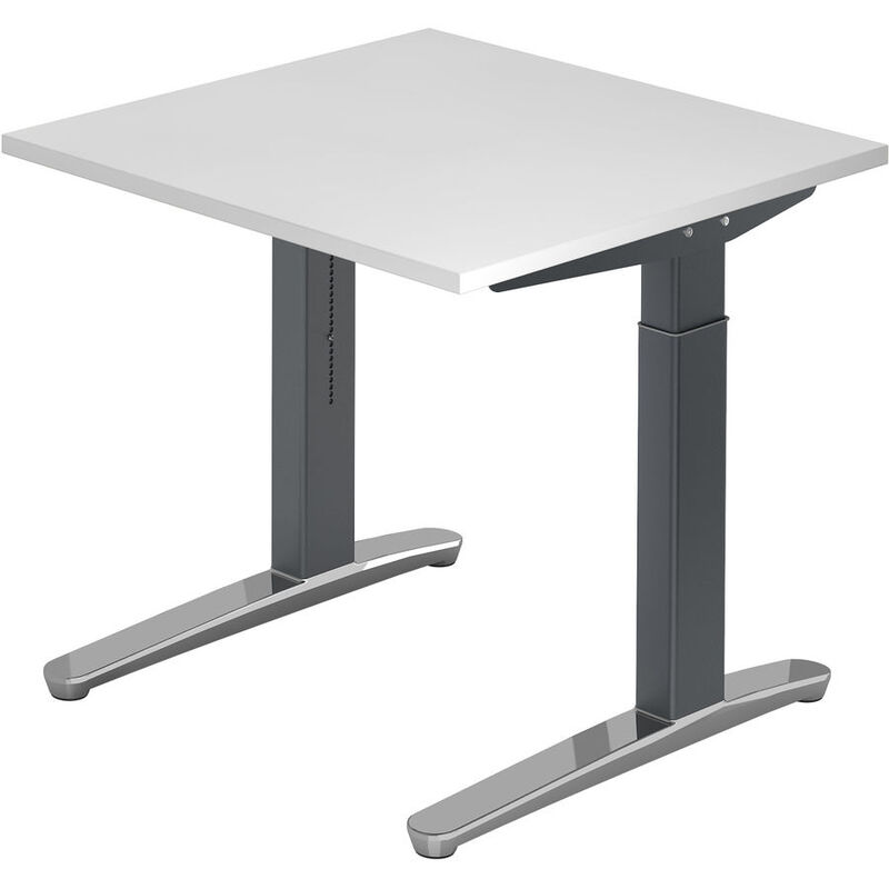 Schreibtisch – Schreibtisch Office – Holzwerkstoff – B 80 T 80 H 85 cm – Arbeitshöhe 65–85 cm; Höhenjustierung ± 5 mm; Plattendicke 2,5 cm; Reckteckrohr 10.7 x 6.7 cm – mit abklappbarer Kabelwanne