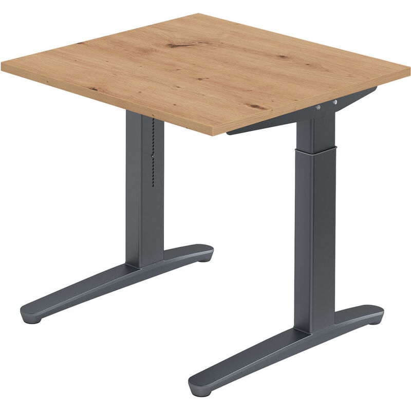 Schreibtisch – Schreibtisch Office – Holzwerkstoff – B 80 T 80 H 85 cm – Arbeitshöhe 65–85 cm; Höhenjustierung ± 5 mm; Plattendicke 2,5 cm; Reckteckrohr 10.7 x 6.7 cm – mit abklappbarer Kabelwanne