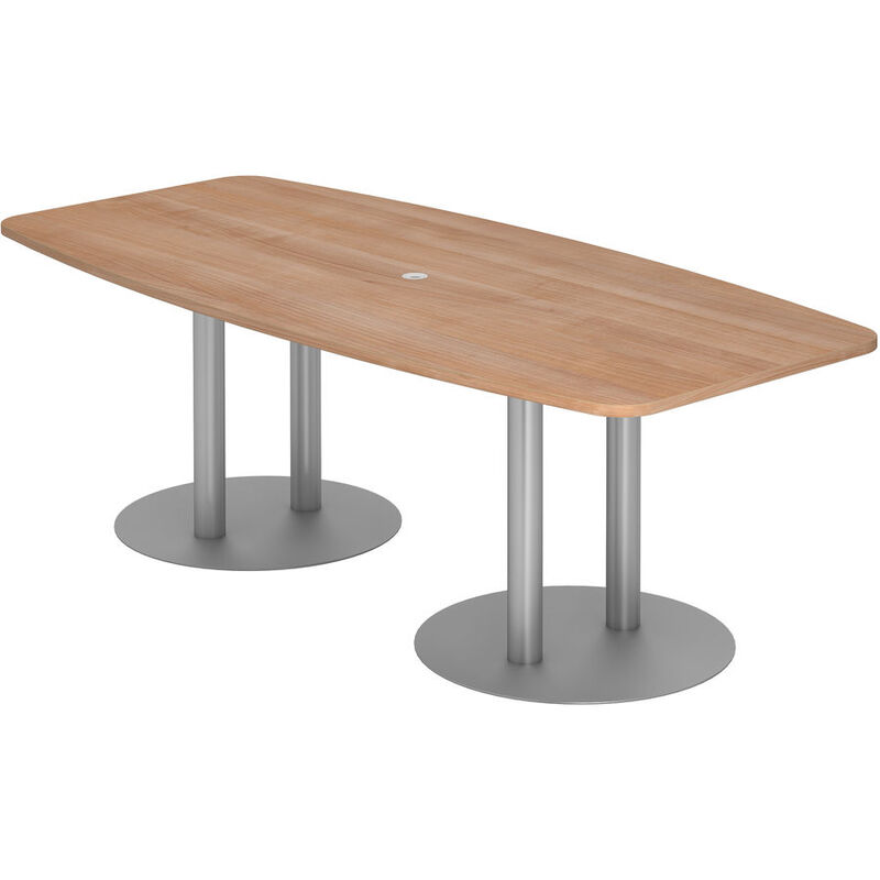 Konferenztisch – Schreibtisch Office – Holzwerkstoff – B 220 T 103 H 74 cm – incl. 1 Kabelauslass 8 cm, mittig; mit zwei silbernen Säulenfüssen, 7,6/70 cm – incl. 1 Kabelauslass 8 cm, mittig; mit zwei verchromten Säulenfüssen, 7,6/70 cm