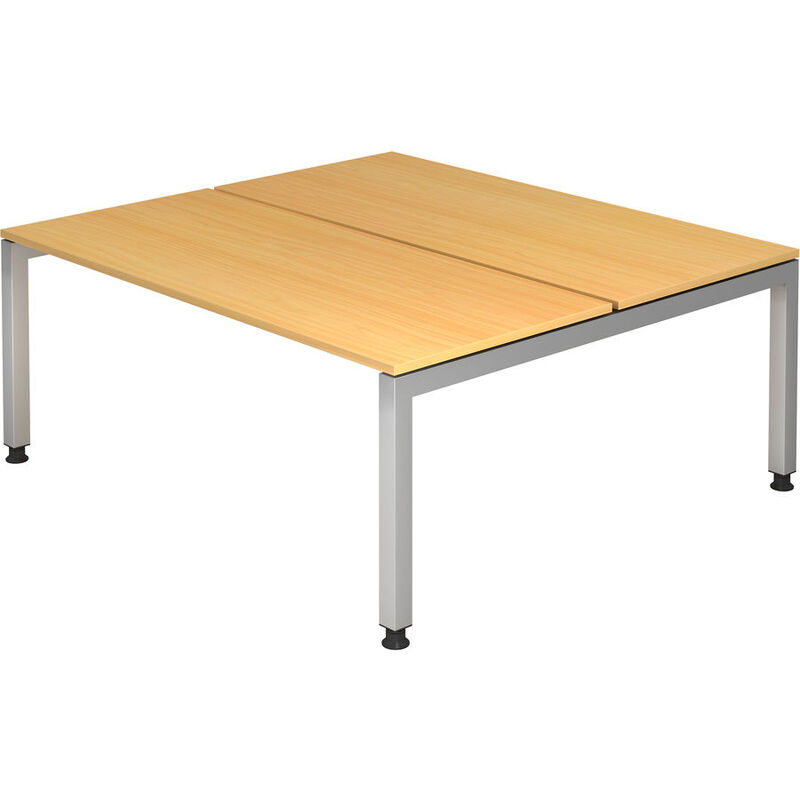 Doppelschreibtisch – Schreibtisch Office – Holzwerkstoff – B 180 T 162.5 H 76 cm – Arbeitshöhe 68–76 cm; Plattendicke 2,5 cm; Gestell silber, 6 x 6 cm