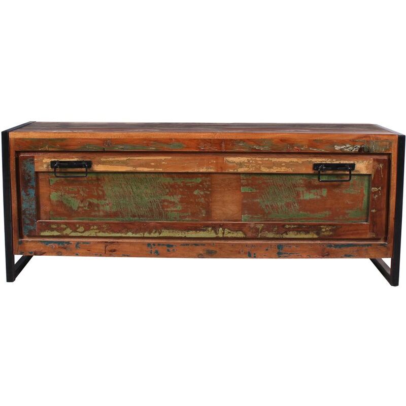 Schuhschrank – Schuhschrank Indo – Holz/Metall – B 130 T 40 H 50 cm – Schuhschrank aus recyceltem Altholz mit Altmetall und Gebrauchsspuren.