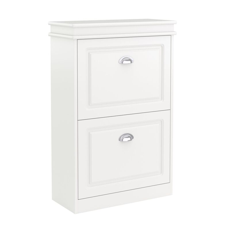 Dieser Schrank ist ein Muss für alle, die Ordnung in ihre Schuhsammlung bringen möchten. Das Möbel besticht durch sein elegantes, weisses Design und dem clever ausgenützten Stauraum. Die beiden Kippfächer bieten Platz für bis zu 12 Paar Schuhe. Richte deinen Eingangsbereich mit Köpfchen ein und hole dir diesen stilvollen Schuhschrank PETRA 53 x 24 x 82 cm!