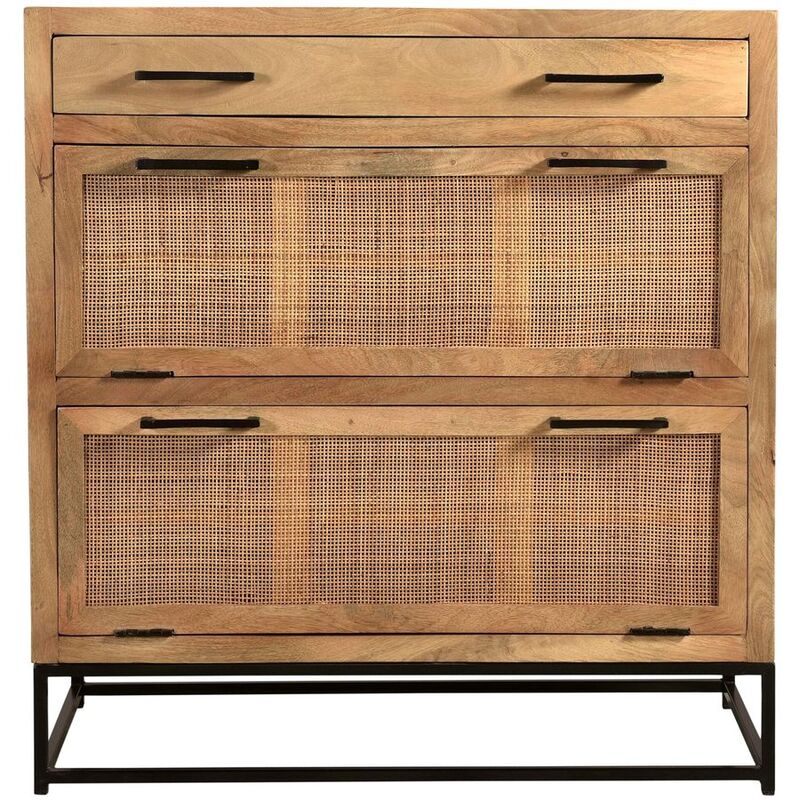 Schuhschrank – Schuhschrank Umberto – Mango – B 84.5 T 40 H 91 cm – für ca. 12 Paar Schuhe, Frontklappen mit Rattan-Einsatz,2 Klappen, 1 Schublade