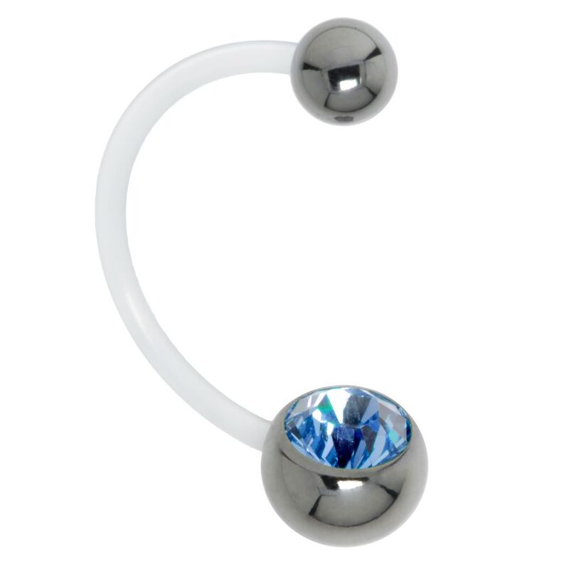 Schwangerschafts Bauchpiercing aus Bioplast und Titan mit Premium Kristall. Verschlusskugel:5mm. Stablänge:30mm. Gewinde:1,6mm. Verschlusskugel:5mm. Ideal für Bauchnabelpiercing während der Schwangerschaft.
