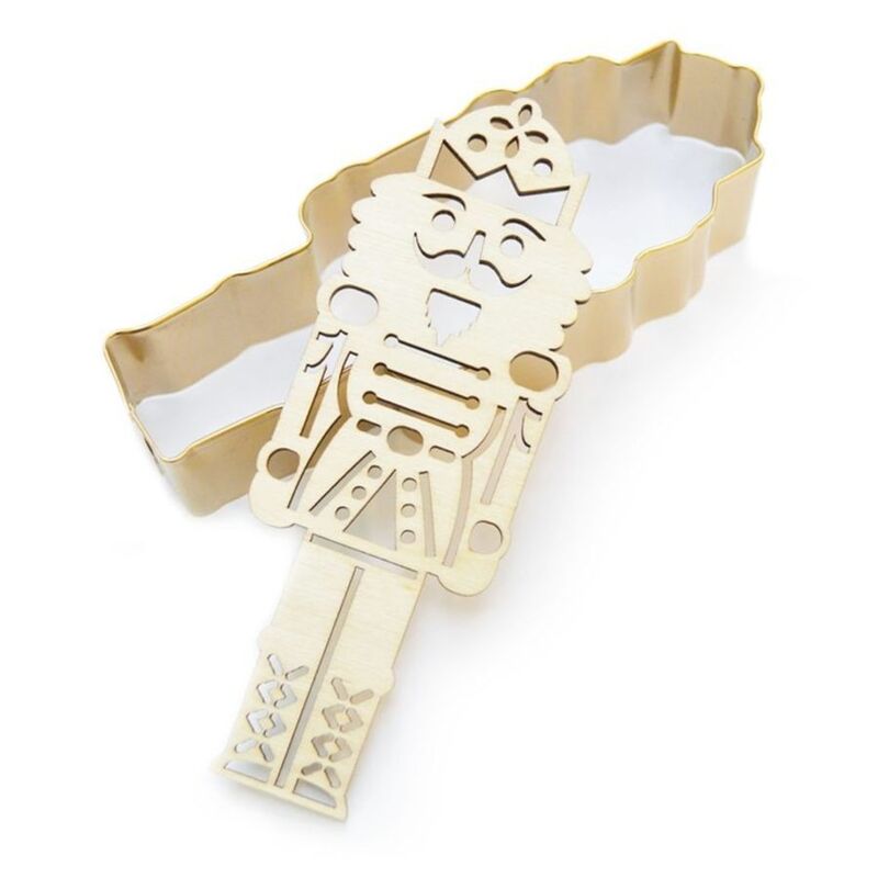 Goldener Ausstecher Nussknacker mit Holz – Ausstechform Scrap Cooking – Edelstahl/holz – B 18.3 T 7.8 H 2.6 cm