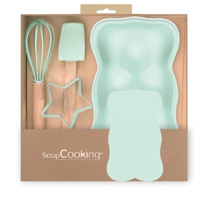 4tlg. Kinderbackset Teddy Bär – Backzubehör Scrap Cooking – Silikon – B 24 T 15.5 H 5.5 cm