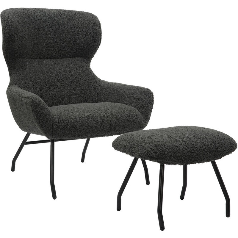 Sessel und Hocker Set Teddyfell Anthrazit – Sessel Idis – Polyester – B 79 T 82 H 103 cm – Teddyfell (100% Polyester), Metall