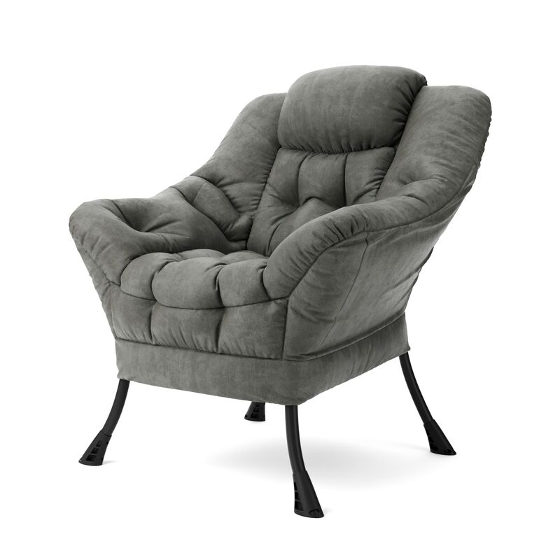 - Flauschig-weicher Sessel mit anthrazitfarbenem Samtstoff