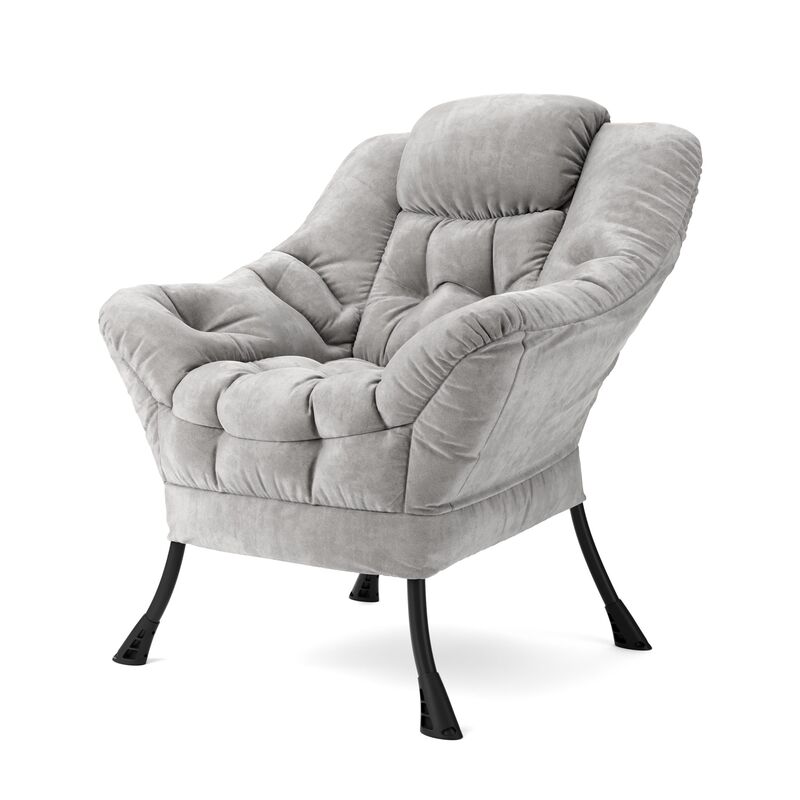 - Flauschig-weicher Sessel mit hellgrauem Samtstoff