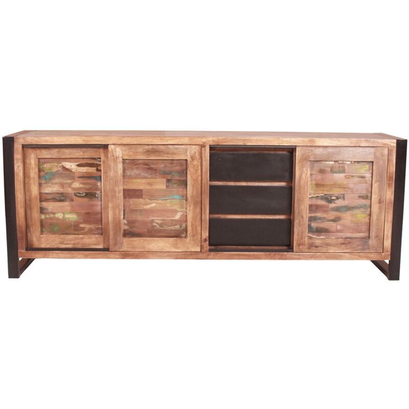 Sideboard – Sideboard Mex – Altholz – B 180 T 40 H 65 cm – Fachmaße rechts BT39x36cm, links 2x 40x33cm, alle jeweils oben 21cm hoch, unten 23cm hoch – 3 Schiebetüren, 3 Schubladen, je 1 fester Boden hinter den Türen