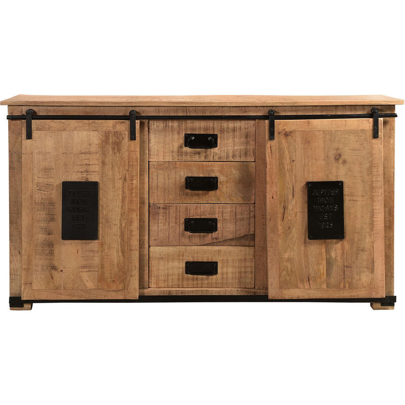 Sideboard – Sideboard Namura – Mango – B 150 T 38 H 81 cm – Schubladenmaße 28x37x12,8 cm, hinter den Türen je 1 fester Boden, Fachmaße 47x33x32,5 cm – 2 Schiebetüren, 4 Schubladen