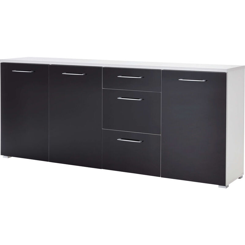 Sideboard – Sideboard Secilia – Holzwerkstoff – B 194 T 40 H 82 cm – 3-türig mit Türdämpfung, dahinter je 1 verstellbarer Einlegeboden (belastbar bis zu 10 kg), 1 kleine und 2 grosse Schubladen mit Selbsteinzug (jeweils belastbar bis zu 10 kg), 6 Bügelgriffe, 4 Kunststofffüsse. Mit Wandbefestigung (exklusive Schrauben und Dübel).