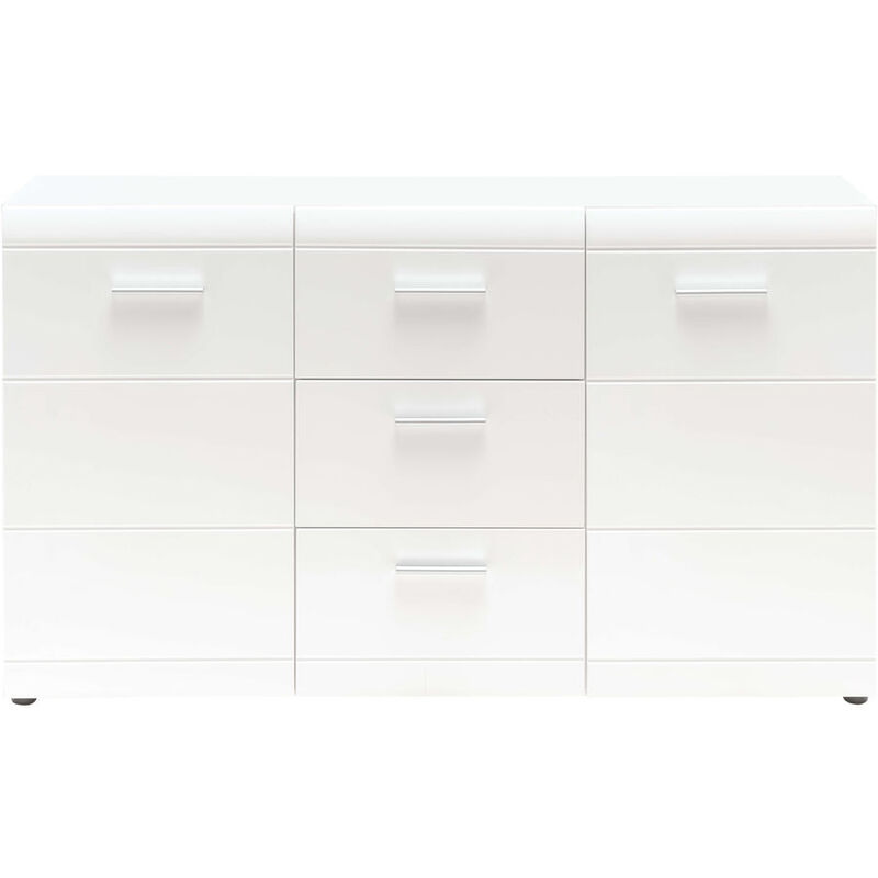 Sideboard – Sideboard Tuxford – Holzwerkstoff – B 144 T 39 H 86 cm – 2-türig, dahinter je ein verstellbarer Einlegeboden (belastbar bis zu 10 kg).3 Schubladen (jeweils belastbar bis zu 7 kg), 5 Steggriffe, 6 Füße. Mit Wandbefestigung (exklusive Schrauben und Dübel).