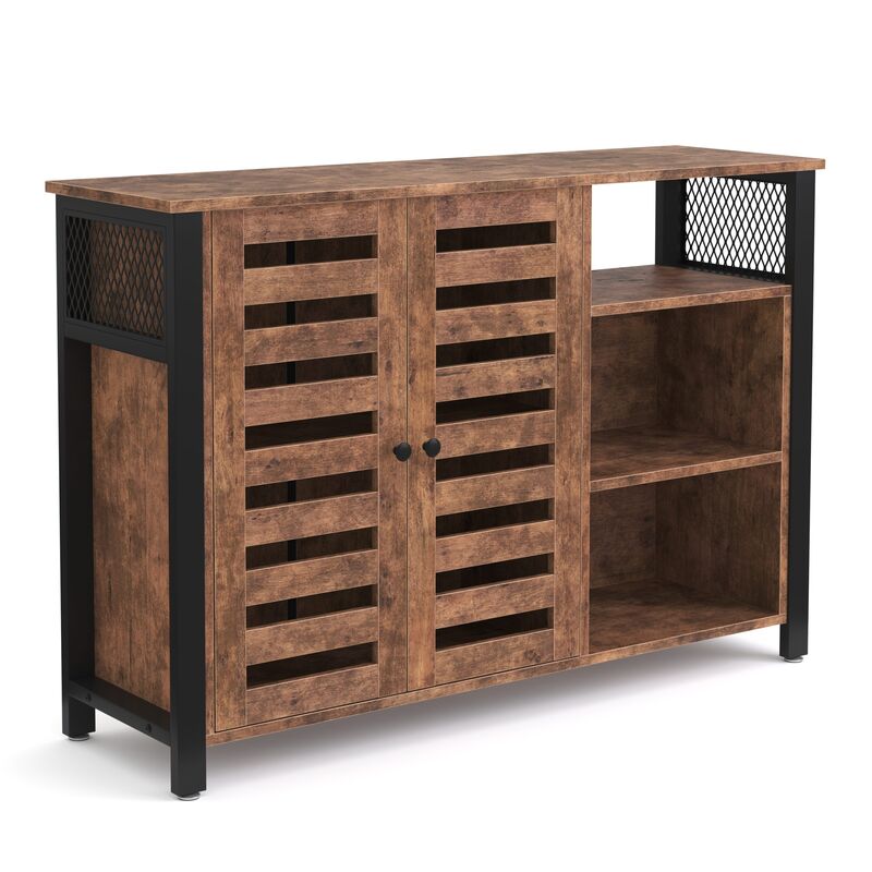 Dieses originelle Sideboard im Vintage-Look verleiht deinem Esszimmer, Wohnzimmer oder deiner Küche das gewisse Etwas. Die grosszügige Ablagefläche bietet Platz für Familienfotos, die Kaffeemaschine oder schöne LED-Kerzen. Die beiden Schranktüren mit Schlitzen sorgen für eine besondere Optik und in den diversen Fächern kannst du Bücher, Geschirr oder Tagesdecken ordentlich verstauen. Bestell dir jetzt dieses Sideboard BONITA und schaffe Ordnung mit Stil!