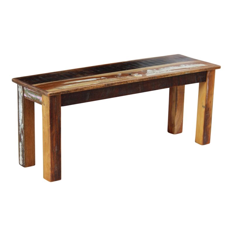 Wiederverwertetes Holz verleiht dieser Sitzbank einen rustikalen Vintage Charakter. Sie können die Bank alleinstehend oder als Sitzgelegenheit an einem langen Tisch verwenden. Individuelle Farbakzente und Maserung machen das stabile Massivholzmöbel zu einem Unikat. Nehmen Sie Platz auf dieser gemütlichen Holzbank, die in jede Wohnung passt!