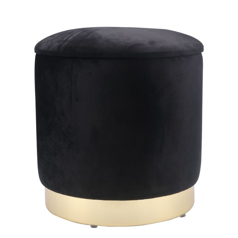 Dieser Hocker ist auf doppelte Weise clever: er kombiniert einen einzigartig eleganten Look mit einem versteckten Aufbewahrungsfach. Auf dem weichgepolsterten Samthocker kannst du entspannt sitzen, ein Apéro geniessen oder deine Schuhe anziehen. Die Sitzfläche lässt sich anheben und das darunterliegende Fach kann zur Aufbewahrung von Decken, Kissen und vielem mehr benutzt werden. Das Sitzmöbel lässt sich vielseitig als Dekoelement, als Ablagefläche für Kleidungsstücke oder als flexible Sitzgelegenheit verwenden. Die schwarze Farbe harmoniert wunderbar mit dem glänzenden Metallsockel in Gold. Verwandle deine Wohnung in eine designaffine Wohlfühloase mit diesem schwarzen Sitzhocker im originellen Look!