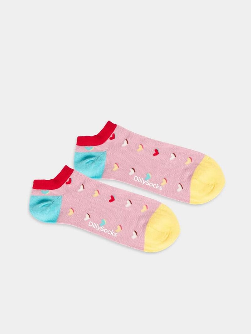 – Sneakersocken in Rosa mit Herz Motiv/Muster