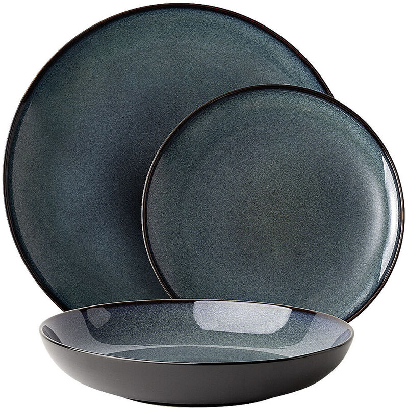 Teller-Set Elements Night – Teller-Set Elements Night – Steingut – – Set 12-teilig 4x Teller flach D 27cm, 4x Teller tief D 23cm, 4x Teller flach D 20cm