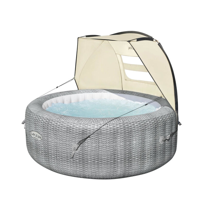 Das praktische Sonnenschutzdach für Ihren Lay-Z-Spa Whirlpool ist aus dichtgewobenem Textil gefertigt. Es spendet Ihnen an heissen Sommertagen kühlen Schatten und sicheren Schutz vor UV-Strahlung. Zusätzlich bietet es auch einen gewissen Sicht- und Windschutz. Mit diesem Sonnendach können Sie das Bad im Whirlpool ganz entspannt geniessen!