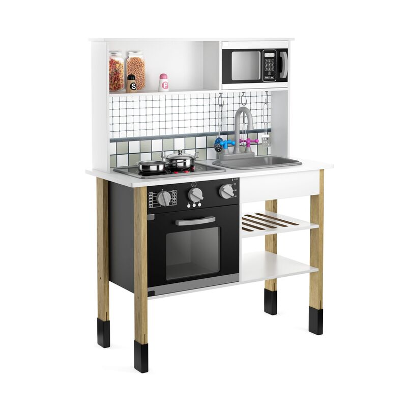 Diese Spielzeugküche ist das perfekte Geschenk für deinen kleinen Liebling. Sie fördert Kreativität und soziales Spielverhalten und lädt dazu ein, die Welt des Kochens zu entdecken. Hergestellt aus hochwertigem MDF und Massivholz, bietet sie unvergesslichen Spielspass über viele Stunden. Lass deinen kleinen Küchenchef in seiner eigenen Welt des Kochens und Backens aufblühen!