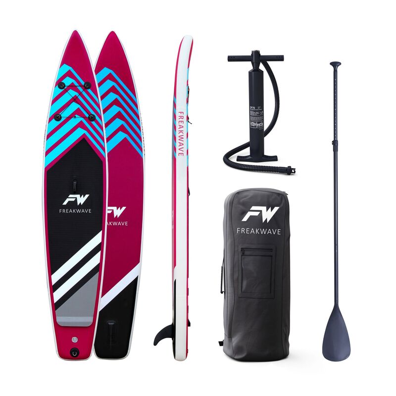 Gleite schnell und mühelos übers Wasser mit diesem sportlichen Paddleboard! Inklusive Pumpe, Tragetasche, Aluminium-Paddel und Reparaturkit – so bist du bereit für deine Abenteuer auf dem Wasser. Die schnittige Form und schmal zulaufende Spitze erlaubt eine höhere Geschwindigkeit beim Paddling. Ideal für Rennen auf dem Wasser oder schnelle Touren auf Flüssen. Ein Highlight für alle Sportfans – let's go!