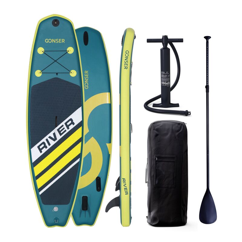 Abenteuerliches Stand Up Paddling auf dem Fluss – eine tolle Aktivität im Sommer mit Spassfaktor! Dieses robuste SUP ist ein bisschen kürzer als herkömmliche Boards und deshalb mit seiner Grösse und Form bestens geeignet für wildes Gewässer. Eine grosszügige Anti-Rutsch-Oberfläche garantiert einen festen Stand und hohen Fusskomfort. Die Finnen auf der Unterseite des Bretts sorgen für Stabilität auf dem Gewässer. Das im Lieferumfang enthaltene Paddel aus Aluminium ermöglicht ein kraftvolles Vorwärtskommen und dank der Pumpe ist das Board auch rasch einsatzbereit. Bei Nichtgebrauch kann das iSUP zusammengelegt und platzsparend verstaut werden. Das Set kann einfach mit der Tragetasche transportiert werden. Wir sind bereit für das Training von Balance, Konzentration und Muskeln – du auch?