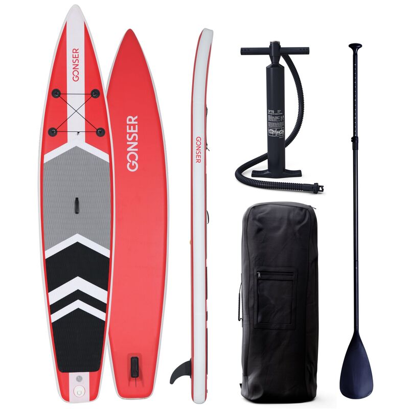 Steche in See mit dem TOURING SUP Board. Das schicke Design erlaubt ein sanftes Gleiten durch die Wellen. So kommst du mit wenig Mühe schnell vorwärts. In diesem Komplettset erhältst du alles, was du zum Stand Up Paddeln brauchst: ein leichtes Paddel aus Aluminium, eine Luftpumpe mit Druckmesser, eine praktische Transporttasche, die als Rucksack getragen werden kann sowie ein Reparaturset, falls doch etwas schief gehen sollte. Das SUP eignet sich sowohl für Neulinge als auch für erfahrene Paddler.