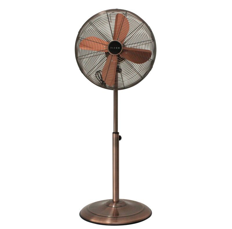 Der elegante Standventilator sorgt zuverlässig für angenehm frische Luft. Stelle die Höhe und den Neigungswinkel so ein, dass der Luftstrom genau dorthin gelangt, wo du es möchtest. Die zuschaltbare Oszillationsfunktion ermöglicht eine optimale Luftzirkulation im Raum. Mit dem Retrodesign in kupferfarbigem Aluminium ist dieser Ventilator ein Hingucker in der Wohnung und im Büro. Wähle die gewünschte Stärke des Luftstroms und geniessen die erfrischende Brise!