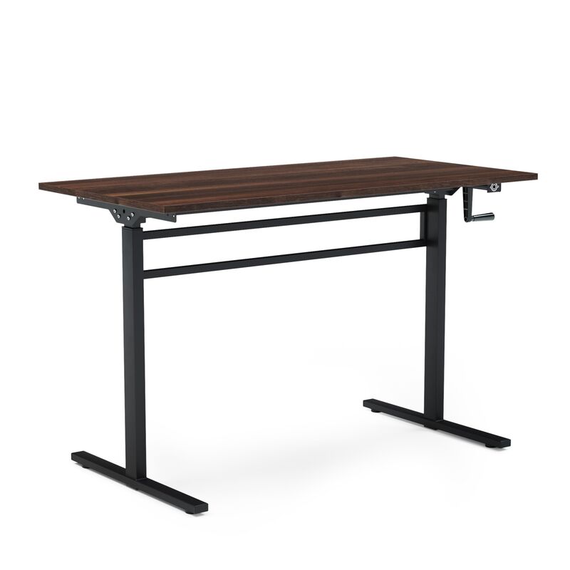 Ergonomisches Sitzen und effizientes Arbeiten mit diesem modernen Arbeitstisch in edlem Mahagoni-Look. Mittels einer handlichen Kurbel kann die Sitz- oder Stehhöhe perfekt an die Körpergrösse angepasst werden. Die Tischfläche aus pflegeleichtem Walnussholz ist ein echter Hingucker in jedem Büro und bietet viel Platz für Büromaterialien. Getragen wird die Holzplatte von einem stabilen Stahlgerüst in schlichtem Schwarz. Hol dir diesen höhenverstellbaren Schreibtisch in Holzoptik in dein Homeoffice – für eine gesunde Körperhaltung!