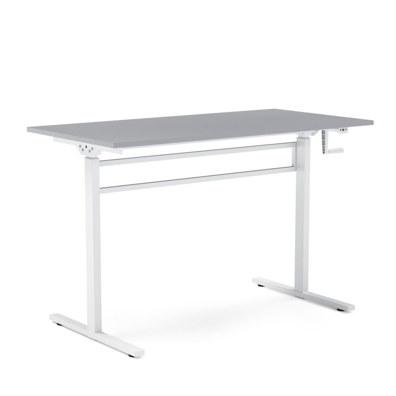 Dieser clevere Schreibtisch ist ein wahrer Game-Changer. Mit der handgerechten Kurbel kannst du die Höhe des Tisches einfach an deine individuelle Körpergrösse anpassen. Beim Wechsel in die Stehposition und mit der Kurbelbewegung bringst du gleich auch noch deinen Kreislauf in Schwung und förderst damit deine Konzentration. Auf der geräumigen Tischplatte aus grauem Mischholz findet alles Platz, was du für den Büroalltag benötigst. Sitze oder stehe konzentrierter bei der Arbeit, dank diesem Stehpult in schlichter grau-weisser Farbe!