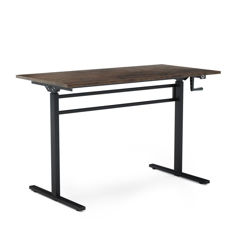 Modern und gesund – dieser clevere Schreibtisch im Vintage-Design ermöglicht dir ergonomisches Arbeiten dank der perfekten Tischhöhe. Durch eine Drehkurbel lässt sich die Tischplatte einfach auf deine gewünschte Höhe im Sitzen oder Stehen einstellen. So kannst du Rückenprobleme vorbeugen und durch die gesunde Körperhaltung effizient arbeiten. Laptop, Tablet, Bildschirm, Tastatur, Notizblock und sonstige Büroutensilien finden Platz auf der geräumigen Tischplatte aus robustem Mischholz. Durch das starke Stahlgerüst in Schwarz steht der Schreibtisch immer stabil und dank den bodenschonenden Füssen entstehen keine Kratzer auf dem Boden beim Verschieben des Stehpultes. Hol dir jetzt diesen höhenverstellbaren Schreibtisch in tollem Vintage-Design für ein gesundes und effizientes Arbeiten!