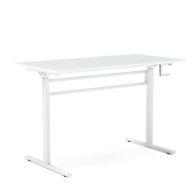 Gesund und elegant – ein moderner Bürotisch für alle, die genug vom Sitzen haben. Dieser weisse Arbeitstisch mit Sitz- und Stehfunktion trägt zu einer besseren Körperhaltung und einer optimalen Durchblutung bei. Die Höhe kann mittels einer praktischen Handkurbel individuell an die persönlichen Bedürfnisse angepasst werden. Getragen wird die grosszügige Arbeitsfläche von einem stabilen Stahlgerüst mit bodenschonenden Stoppern aus Kunststoff. Gönne dir einige Minuten im Stehen mit diesem höhenverstellbaren Stehpult in Weiss!