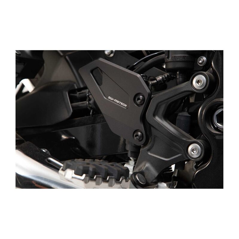 SW-MOTECH FERSENSCHUTZ, SCHWARZ Gut geschützt: Dieser Fersenschutz verhindert das Touchieren des heissen Auspuffs oder der Kette und schützt vor den Bewegungen der Schwinge. * Zur Montage an der linken und rechten Seite * Modellspezifische Entwicklung für optimale Form und Grösse * Formschön und hochwertig verarbeitet * Einfache Montage an bereits bestehenden Anbaupunkten * Schutz deines Stiefels vor Berührungen des heissen Auspuffs , der Kette oder Bewegungen der Schwinge LIEFERUMFANG: * 2x Fersenschutz * Montagematerial * Anbauanleitung BACKYARD RACING DETAILS: * Material: Aluminium * Oberfläche: Eloxiert * Farbe: Schwarz fersenschutz,fersenschoner,protezione per il tallone,protection du talon,talonnette,heel guard,heel protector Passend auf: KAWASAKI Z 900 Z 900 RS Z 900 RS CAFE Z 900 RS SE Z 900 RS SE / 50 YEARS Z 900 SE / 50 YEARS