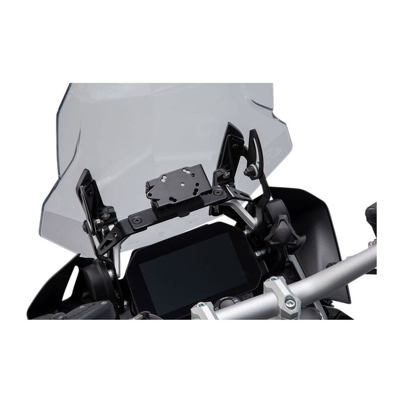 SW-MOTECH GPS-HALTER QUICK-LOCK Um eine optimale Positionierung zu erreichen, sichert ein pulverbeschichtetes Stahlblech die stabile Befestigung des Navi-Halters an original Befestigungspunkten im Cockpit. Geschickte Positionierung, Vibrationsdämpfung und leichtes Abnehmen: Dies vereinen die fahrzeugspezifisch abgestimmten Navi-Halter. Die schwenkbare Halterung lässt sich mit einem Handgriff abnehmen und gibt dank des universellen Lochmusters vielen aktuellen Navigationsgeräten genauso sicheren Halt wie den Navi Case Pro Gerätetaschen und Smartphone Hardcases von SW-Motech. Eine integrierte Dämpfung schützt die Hardware vor Erschütterungen. * Einfache Montage an bereits vorhandenen Anbaupunkten im Cockpit * Aus schwarz pulverbeschichtetem Stahl mit QUICK-LOCK Mechanismus aus glasfaserverstärktem Kunststoff * Auf Motorradmodell abgestimmt für eine optimale Positionierung * Abnehmbar, schwenkbar und vibrationsgedämpft * Halteblech mit universellem Lochmuster gibt allen gängigen Navi-Modellen und den Navi Case Pro Gerätetaschen oder Hardcases von SW-Motech sicheren Halt LIEFERUMFANG: * 1x Navi-Halter im Cockpit * Montagematerial * Anbauanleitung navi halter am lenker,quick-lock navihalter,navihalter lenkerklemme,quick-lock halter,quick lock navi halter,gpshalterung,motorrad gpshalterung,navihalterung Passend auf: BMW R 1200 GS ADVENTURE R 1200 GS ADVENTURE LC R 1200 GS LC R 1250 GS R 1250 GS ADVENTURE R 1250 GS RALLY STYLE