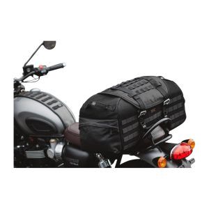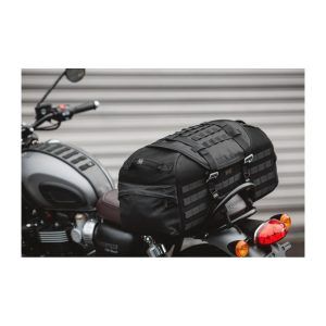 SW-MOTECH HECKTASCHE LEGEND GEAR LR2, BLACK EDITION Die 48-Liter-Hecktasche kombiniert das aussergewöhnliche Design der Legend Gear Reihe mit ausreichend Stauraum für ausgedehnte Touren. Die Legend Gear Hecktaschen zeichnen sich aus durch komfortable Ausstattung und klassischen Look. Hochwertige Materialien wie gewachstes Canvas und robustes Napalon-Kunstleder unterstreichen das Design aktueller Retro-Motorräder. * Universelle Passform für verschiedenste Motorrad-Modelle, auch für oben liegende Auspuffanlagen geeignet * Rutschfeste Unterseite * Sicherer Halt durch 4-Punkt-Spanngurt-Befestigung * Regenschutz durch wasserabweisendes Material und wasserdichte Innentasche aus 210D Polyamid, zweifach PU-beschichtet * Zahlreiche Halteschlaufen zur individuellen Befestigung der Legend Gear Zusatztaschen LA1 und LA2 und der Legend Gear Smartphone-Tasche LA3 * Auflagefläche auf der Sitzbank: 230 mm LIEFERUMFANG: * 1x Legend Gear Hecktasche LR2 * 1x wasserdichte Innentasche * 4x Schlaufgurte mit Legend Gear Haken * 2x Gurte zur Befestigung am Kennzeichenhalter * Lackschutzfolie * Anbauanleitung HINWEIS: Zum Schutz der Naturfaser vor Witterungseinflüssen empfehlen wir, die Baumwolltextiloberfläche des Produkts in regelmässigen Abständen bzw. nach intensiver Reinigung mit einer handelsüblichen Wachsimprägnierung (z.B. von Fjällräven) zu imprägnieren.