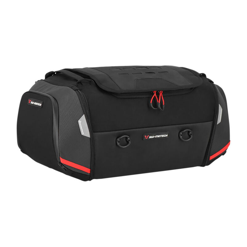 SW-MOTECH HECKTASCHE PRO RACKPACK Das robuste PRO Rackpack wurde gezielt für den Einsatz auf Gepäckträgern entwickelt und ist in Kombination mit dem Schultergurt eine praktische Reisetasche. Es lässt sich in Verbindung mit der Gepäckbrückenerweiterung problemlos auf dem STREET-RACK oder dem ADVENTURE-RACK sowie auf Standardträgern, Soziussitz oder an einer Sissybar befestigen. Die Erweiterungen auf beiden Seiten der Hecktasche erlauben eine Ausdehnung des Volumens von 32 auf 42 Liter. In den zwei Aussentaschen mit innenliegenden Netzfächern kann kleineres Gepäck sicher verstaut werden. Der Unterboden ist mit rutschhemmendem Material ausgestattet und die Oberseite der PRO Rearbag Hecktasche gibt Zusatztaschen sicheren Halt am aufgenähten MOLLE-Aufsatz. Die Hecktasche aus der PRO Serie wird aus unverwüstlichem 1680 D Ballistic Nylon gefertigt, das ursprünglich für militärische Zwecke konzipiert wurde. Zudem überzeugt sie mit hochwertiger Verarbeitung und durchdachten Features: Reflektierende Aufsätze sorgen für bessere Sichtbarkeit, robuste Zurrhaken sichern die Taschen einfach und schnell am Heck und ein MOLLE-Aufsatz auf der Oberseite ermöglicht die Befestigung von Zusatztaschen. Die patentierten Zurrhaken erlauben eine flexible Befestigung der PRO Hecktaschen. Dabei erfolgen das Einhaken und das Spannen der Gurte in einem Schritt. Zum Abnehmen der Tasche wird der Gurt mit einem Handgriff entspannt und durch Ziehen am Zugband aus der Zurröse entfernt. Die überschüssige Gurtlänge kann mit einem Klettverschluss am Gurt gesichert werden. So kann die Tasche an verschiedenen Motorrädern zum Einsatz kommen und die Gurtlänge entsprechend angepasst werden. * Universelle Passform für fast alle Motorräder * Grosses Netzfach mit Reissverschluss auf der Deckelinnenseite * Zusätzlicher Stauraum durch zwei Aussentaschen mit abgedeckten Reissverschlüssen * Innenliegende Netzfächer mit Reissverschlüssen in beiden Aussentaschen * Volumenerweiterungen auf beiden Aussenseiten * Unterseite aus rutschhemmendem Material * Robuste Zurrösen zur sicheren Befestigung der Tasche an 4 Punkten und zum Verzurren von Zusatztaschen * Aus widerstandsfähigem und besonders UV-beständigem 1680D Ballistic Nylon mit wasserabweisender Innenbeschichtung * Reflektierende Details für bessere Sichtbarkeit * Reissverschluss-Management: Gummischlaufen verhindern ein Flattern der Zipper * MOLLE-Aufsatz aus stabilem Hypalon-Material auf der Oberseite für die Befestigung von Zusatztaschen. * Einfache und schnelle Befestigung der Tasche am Motorrad durch Schlaufgurte mit patentiertem Zurrhaken. * Witterungsschutz durch mitgelieferte wasserdichte Innentasche * Stabiler Tragegriff LIEFERUMFANG: * 1x PRO Rackpack Hecktasche * 1x wasserdichte Innentasche * 4x Schlaufgurte mit Zurrhaken * 1x Schultergurt * 1x Lackschutzfolie * Anbauanleitung
