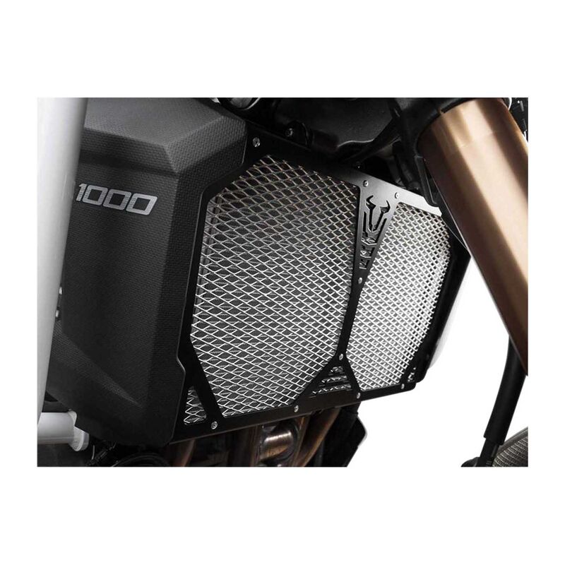 SW-MOTECH KÜHLERSCHUTZ, SCHWARZ – SILBER Der passend zum Erscheinungsbild deines Motorrads konstruierte Protektor bietet eine Extraportion Schutz vor Steinschlag. Die solide Konstruktion besteht aus einem Rahmen aus Aluminium-Legierung sowie einem Gitter, welches aufgewirbelte Steine abhält, ohne die Luftzufuhr zum Kühler zu beeinträchtigen. Der Kühlerschutz lässt sich schnell und einfach an original Anbaupunkten montieren. Alle zur Montage benötigten Anbaumaterialien sind im Lieferumfang enthalten. * Schützt den Kühler vor Steinschlag * Mit silbernem Gitter * Solide Konstruktion und leicht auszuführende Montage mit original Schrauben * Für einen individuellen Look: Von SW-Motech passend zum Erscheinungsbild deines Motorrades entwickelt LIEFERUMFANG: * 1x Kühlerschutz * Montagematerial * Anbauanleitung kühlerblende,kühlerabdeckung,steinschlagschutz,Radiatorguard,Kühlerschutz,Alukühlerschutz,Aluminiumkühlerschutz,Chüelerschutz,Kühler-Protektor,Kühlerprotektor,Protection de radiateur,Protezione del radiatore Passend auf: KAWASAKI VERSYS 1000