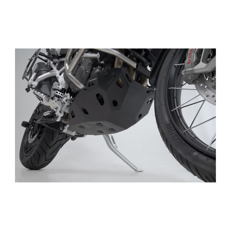 SW-MOTECH MOTORSCHUTZ, SCHWARZ Der auf das Design des Bikes abgestimmte Motorschutz von SW-Motech bietet Dir zuverlässigen Schutz vor Steinschlag und bei ungewolltem Bodenkontakt. Die Pulverschichtung der Oberfläche ist äusserst strapazierfähig und schützt dauerhaft vor Korrosion. Der äusserst stabile Unterbodenschutz lässt sich mittels der mitgelieferten, massgeschneiderten Anbauelemente aus Stahl problemlos ohne Bohren und Schweissen an den Original-Befestigungspunkten anbringen. BACKYARD RACING DETAILS: * Modellspezifische Entwicklung für optimale Passform * Schützt den Unterboden und Teile vom Krümmer und Auspuff vor Steinschlag und Kollision * Robuste Ausführung aus hochwertiger Aluminium-Legierung * Belastbare und einfache Montage an den Original-Anbaupunkten, keine Veränderungen am Motorrad erforderlich LIEFERUMFANG: * 1x Motorschutz * Montagematerial * Anbauanleitung steinschlagschutz,unterbodenschutz,krümmerschutz,motorplatte, motorschutz, unterboden, unterschutz, skidplate, grindplate, platte, schutzplatte, paramotore in plastica, paramotore in alluminio, sabot moteur Passend auf: TRIUMPH TIGER 900 GT / GT LOW / GT PRO / RALLY / RALLY PRO TIGER 900 GT / GT PRO / RALLY / RALLY PRO