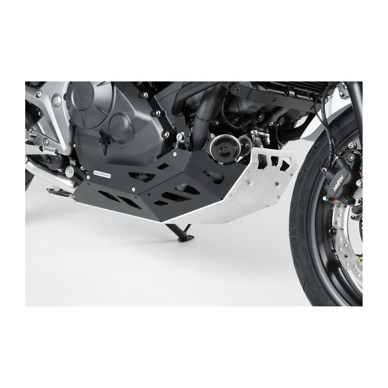SW-MOTECH MOTORSCHUTZ, SCHWARZ – SILBER Der auf das Design des Bikes abgestimmte Motorschutz von SW-Motech bietet Dir zuverlässigen Schutz vor Steinschlag und bei ungewolltem Bodenkontakt. Die Pulverschichtung der Oberfläche ist äusserst strapazierfähig und schützt dauerhaft vor Korrosion. Der äusserst stabile Unterbodenschutz lässt sich mittels der mitgelieferten, massgeschneiderten Anbauelemente aus Stahl problemlos ohne Bohren und Schweissen an den Original-Befestigungspunkten anbringen. BACKYARD RACING DETAILS: * Modellspezifische Entwicklung für optimale Passform * Schützt den Unterboden und Teile vom Krümmer und Auspuff vor Steinschlag und Kollision * Robuste Ausführung aus hochwertiger Aluminium-Legierung * Belastbare und einfache Montage an den Original-Anbaupunkten, keine Veränderungen am Motorrad erforderlich LIEFERUMFANG: * 1x Motorschutz * Montagematerial * Anbauanleitung steinschlagschutz,unterbodenschutz,krümmerschutz,motorplatte, motorschutz, unterboden, unterschutz, skidplate, grindplate, platte, schutzplatte, paramotore in plastica, paramotore in alluminio, sabot moteur Passend auf: HONDA NC 700 S NC 700 X NC 700 XA NC 700 XD NC 750 SA NC 750 SD NC 750 XA NC 750 XD