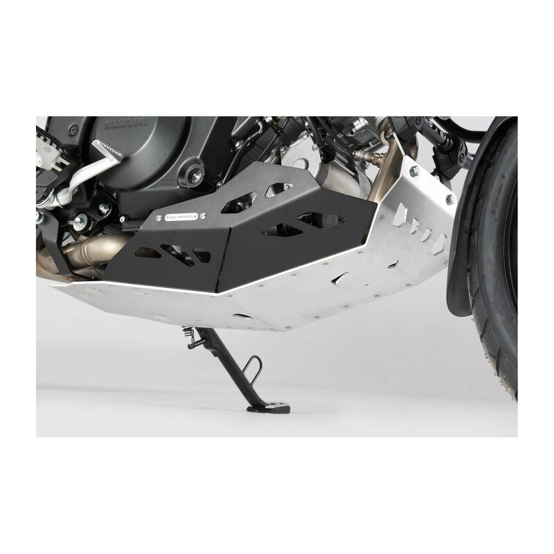 SW-MOTECH MOTORSCHUTZ, SILBER Der auf das Design des Bikes abgestimmte Motorschutz von SW-Motech bietet Dir zuverlässigen Schutz vor Steinschlag und bei ungewolltem Bodenkontakt. Die Pulverschichtung der Oberfläche ist äusserst strapazierfähig und schützt dauerhaft vor Korrosion. Der äusserst stabile Unterbodenschutz lässt sich mittels der mitgelieferten, massgeschneiderten Anbauelemente aus Stahl problemlos ohne Bohren und Schweissen an den Original-Befestigungspunkten anbringen. BACKYARD RACING DETAILS: * Modellspezifische Entwicklung für optimale Passform * Schützt den Unterboden und Teile vom Krümmer und Auspuff vor Steinschlag und Kollision * Robuste Ausführung aus hochwertiger Aluminium-Legierung * Belastbare und einfache Montage an den Original-Anbaupunkten, keine Veränderungen am Motorrad erforderlich LIEFERUMFANG: * 1x Motorschutz * Montagematerial * Anbauanleitung steinschlagschutz,unterbodenschutz,krümmerschutz,motorplatte, motorschutz, unterboden, unterschutz, skidplate, grindplate, platte, schutzplatte, paramotore in plastica, paramotore in alluminio, sabot moteur Passend auf: SUZUKI DL 1000 A V-STROM XT